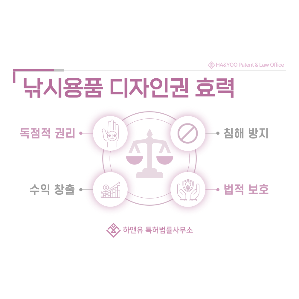 디자인권이 있으면 법적으로 보호받는 범위가 명확하게 설정되어 침해 행위가 발생했을 때 즉각적인 대응이 가능합니다.
