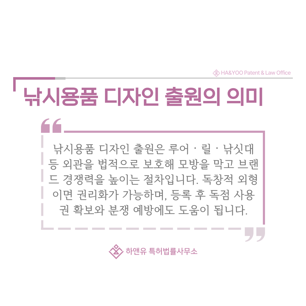 독창적인 디자인을 정식으로 등록해두면 전문성과 신뢰도가 높아져 브랜드 이미지 향상에 큰 도움이 됩니다.