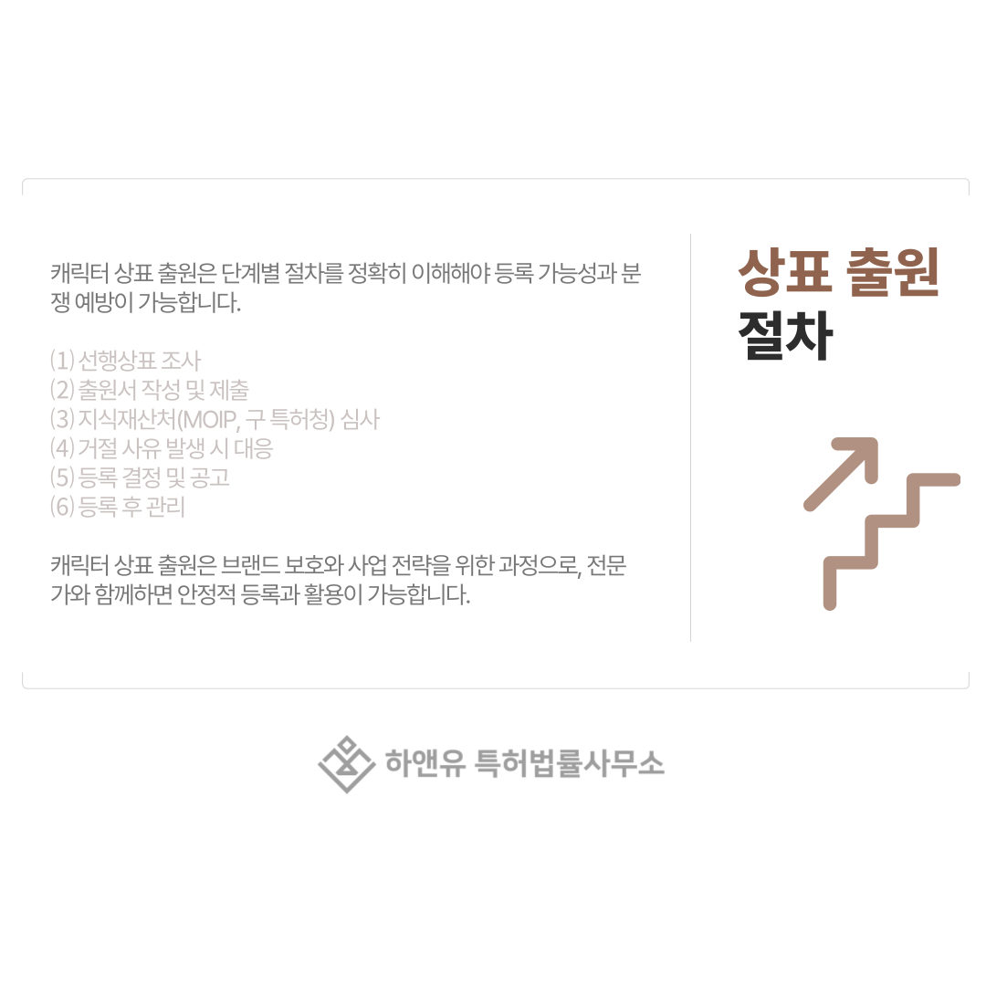 캐릭터 상표 출원 절차는 단순히 서류 제출이 아니라 브랜드 보호와 사업 전략을 위한 중요한 과정입니다.