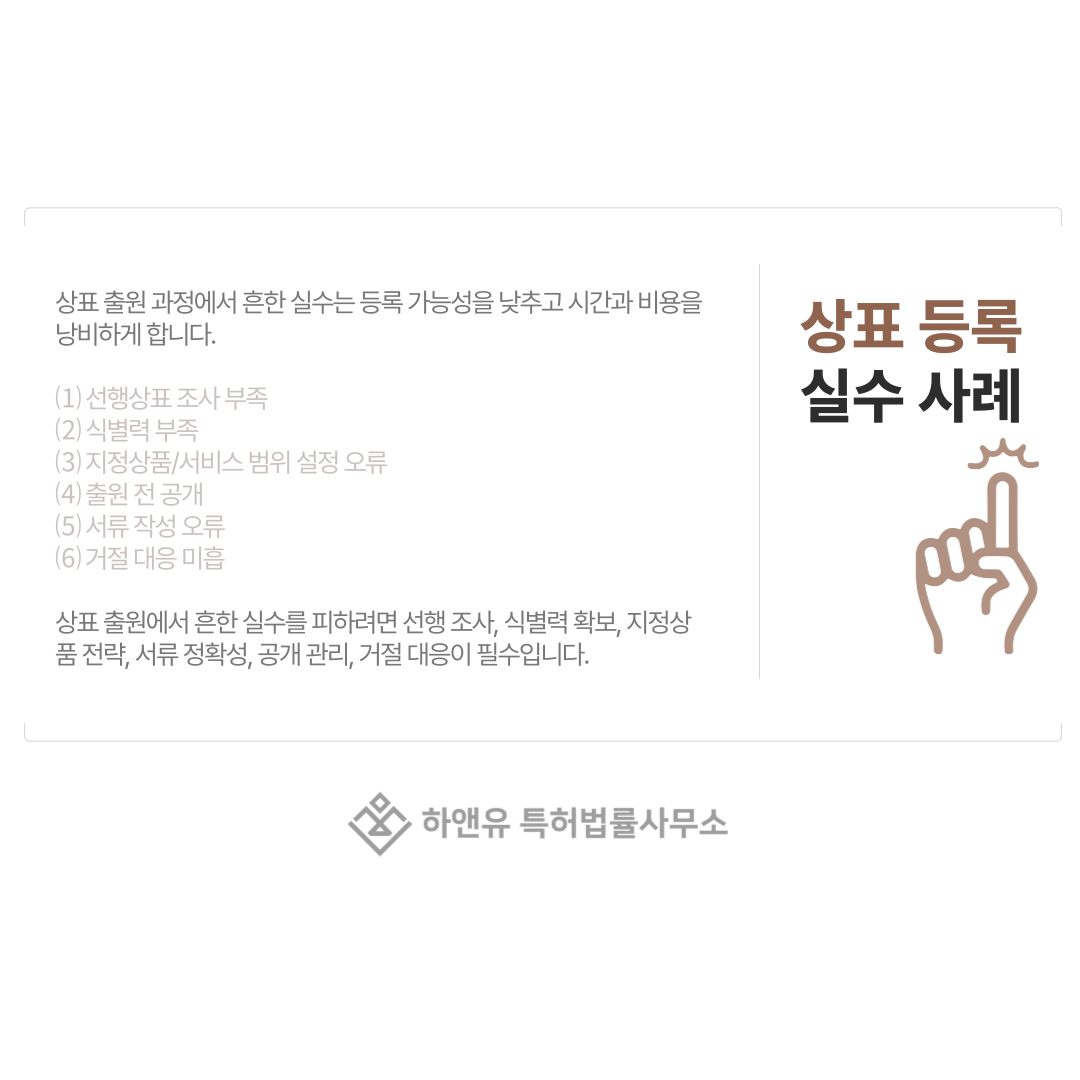 상표 출원 과정에서 자주 발생하는 실수는 등록 가능성을 낮추고 불필요한 시간과 비용을 초래합니다.