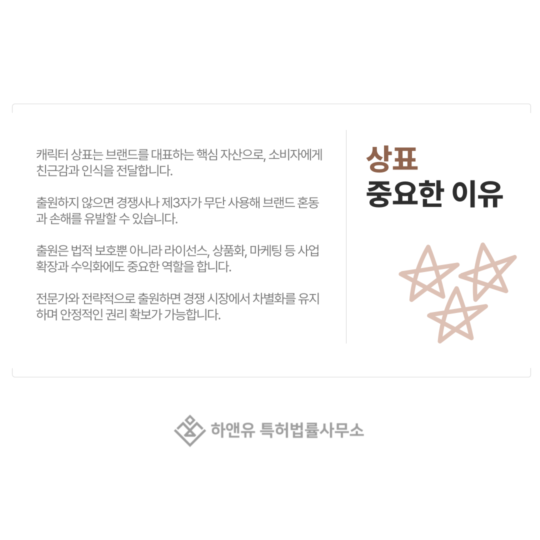 #캐릭터상표 #캐릭터등록 #브랜드보호 #지식재산권 #MOIP #상표전문가 #상표거절대응 #상표 #상표권 #상표출원 #상표등록 #TrademarkRegistration #TrademarkApplication #특허사무소 #특허법률사무소 #하앤유특허법률사무소