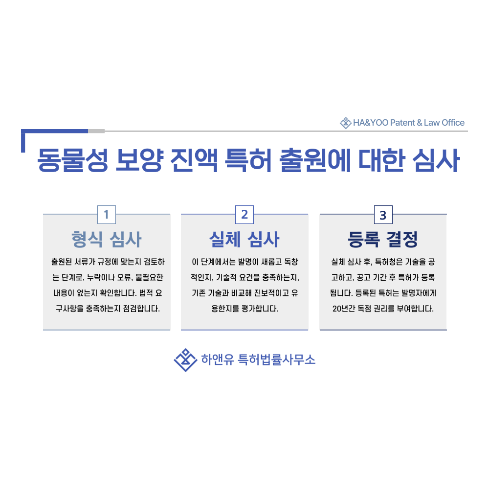 녹용, 사슴, 오리, 한우, 추어, 삼계 진액·즙 조성물 특허 출원은 먼저 서류의 형식적 요건을 검토하는 형식심사를 거칩니다.