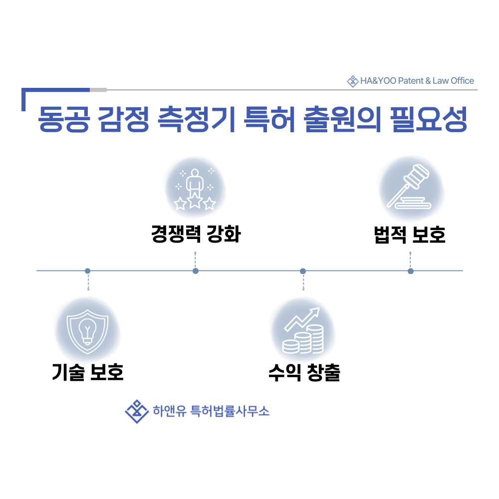동공 반응 감정 측정기는 고감도 센서 기술, 이미지 처리 알고리즘, 감정 분석 모델 등 다양한 핵심 기술이 결합된 정밀 장치입니다. 이러한 기술이 외부에 그대로 노출되면 쉽게 모방되거나 역설계될 위험이 있습니다. 특허 출원을 통해 동공 반응 측정 방식, 데이터 분석 절차, 오차 보정 기법 등을 법적으로 보호하면, 개발 과정에서 축적된 연구성과와 노하우를 안전하게 지킬 수 있습니다.