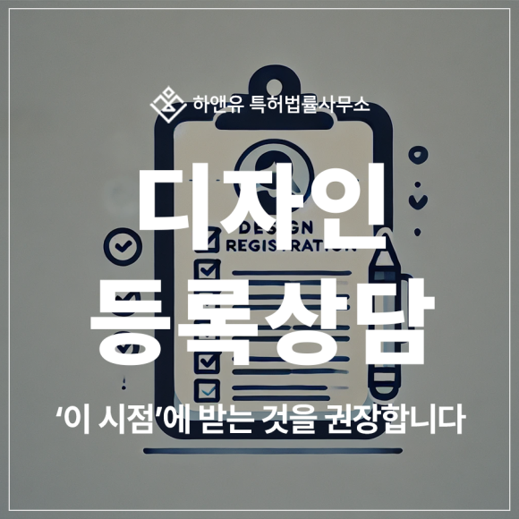 디자인 등록 상담 시점을 고민하고 있다면 지금 바로 하앤유 특허법률사무소로 문의하시기 바랍니다.