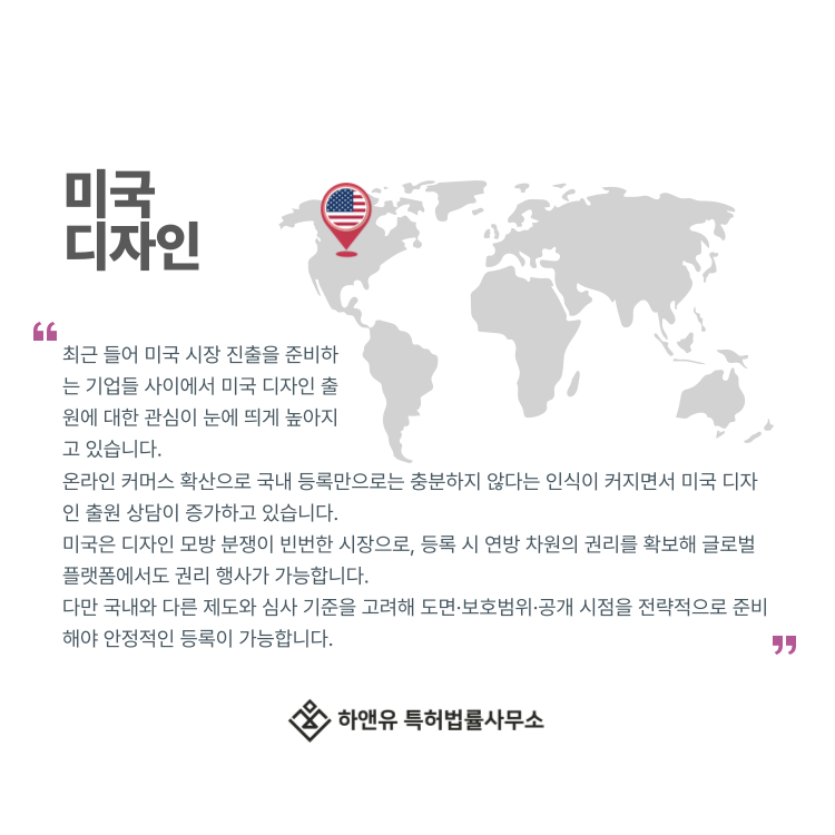 #미국디자인 #미국디자인출원 #미국디자인등록 #미국디자인특허 #미국디자인권 #해외출원 #해외상표출원 #헤이그출원 #하앤유특허법률사무소 #DesignPatent #DesignRegistration #DesignApplication