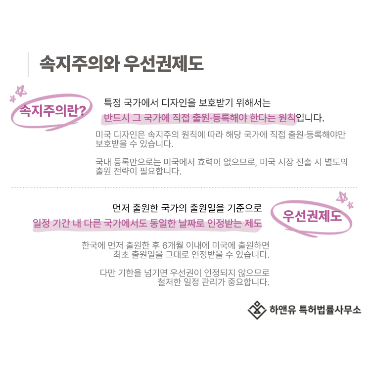 미국 디자인 출원은 기본적으로 속지주의 원칙을 따릅니다.