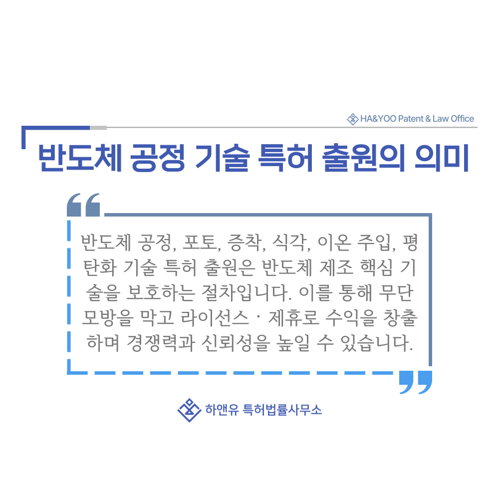 예를 들어 차세대 노광 공정이나 고효율 증착 기술을 특허로 보호하면 기술적 우위를 선점할 수 있습니다.