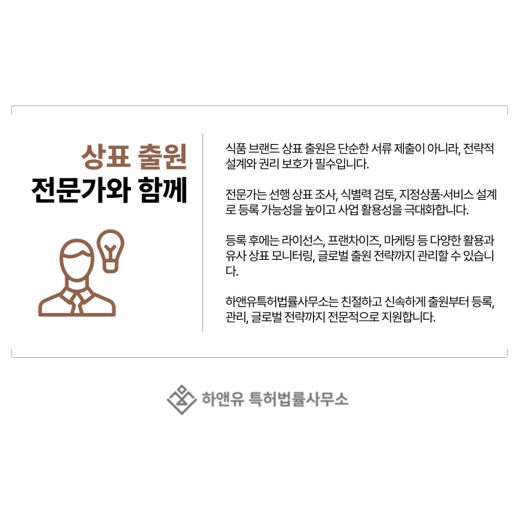 식품 브랜드 상표 출원과 등록은 초기 단계에서 전문가와 전략적으로 설계해야 성공할 수 있습니다.