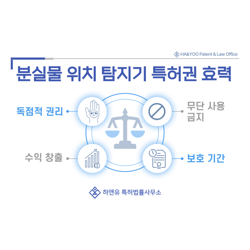 실체심사를 통과하면 특허청에서 등록 결정을 내리고, 출원인은 지정된 기간 내에 등록료를 납부해야 합니다. 등록이 완료되면 출원일을 기준으로 20년 동안 분실물 위치 복원 탐지기에 대한 독점적 권리를 행사할 수 있습니다. 이를 통해 기술 무단 사용을 막고, 제품 판매나 기술 이전, 라이선스 계약 등 다양한 방식으로 사업적 가치를 실현할 수 있습니다.