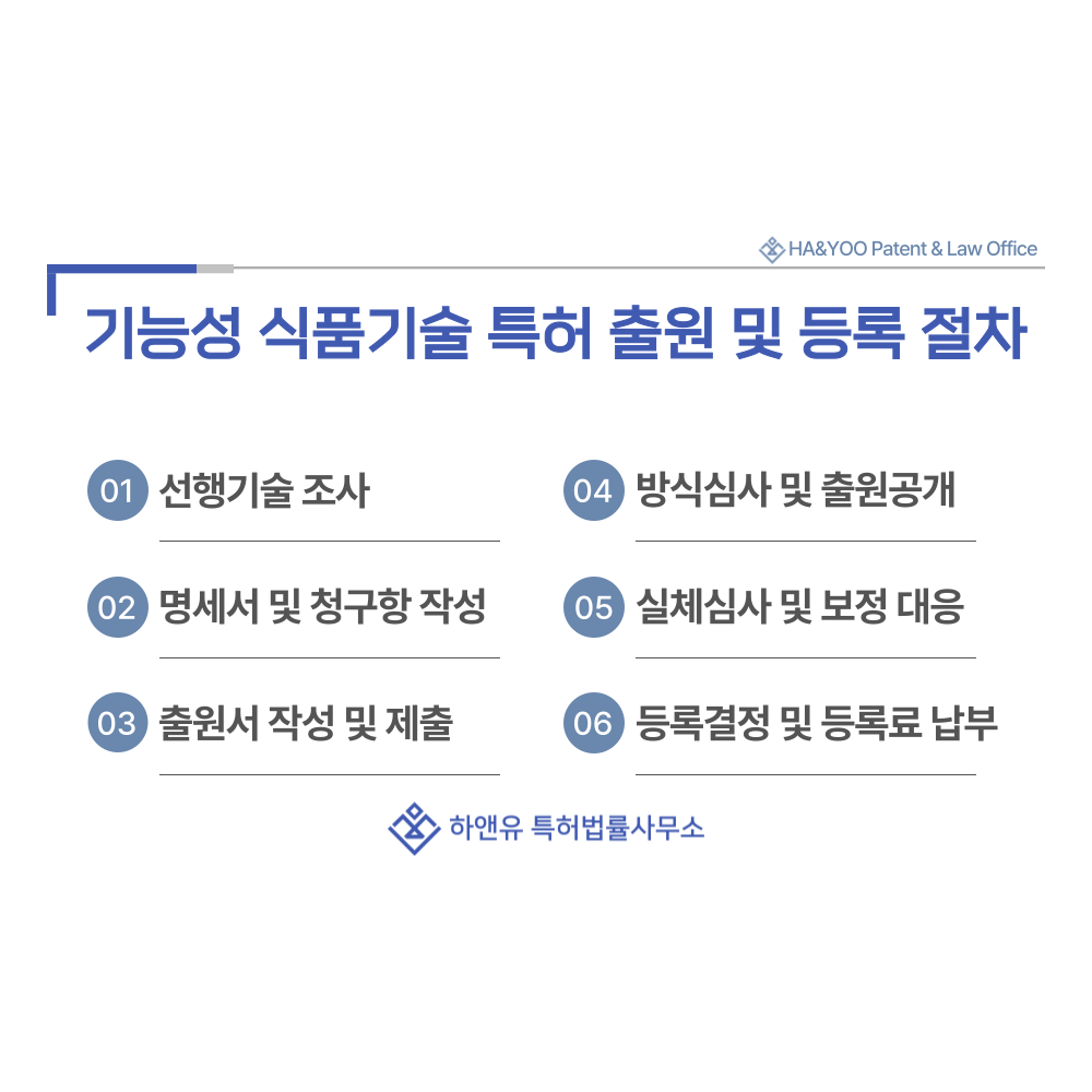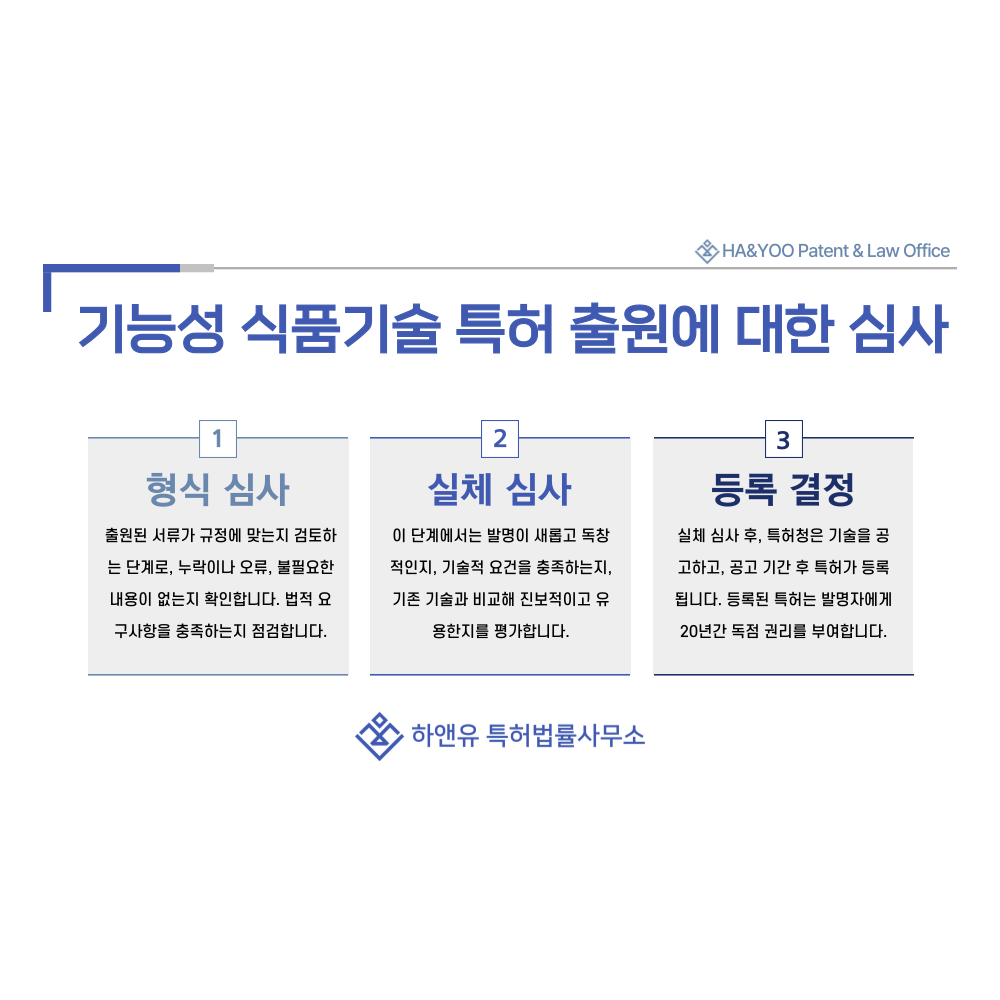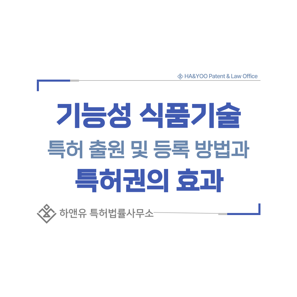 #기능성식품기술 #비건식품 #글루텐프리식품 #저당식품 #저나트륨식품 #특허 #특허출원 #특허등록 #특허권 #하앤유 #특허변리사 #PatentRegistration #PatentApplication