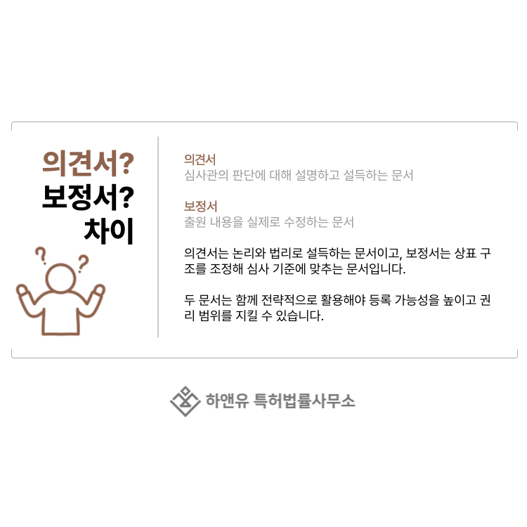 그래서 의견서와 보정서는 각각 따로 보는 것이 아니라, 하나의 전략으로 설계해야 합니다.
