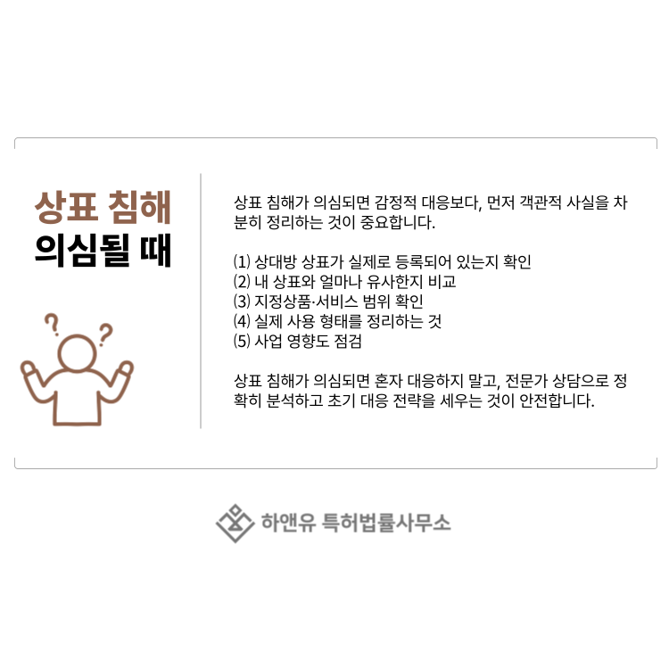 상표 침해가 의심되는 순간이 바로 대응 타이밍입니다.