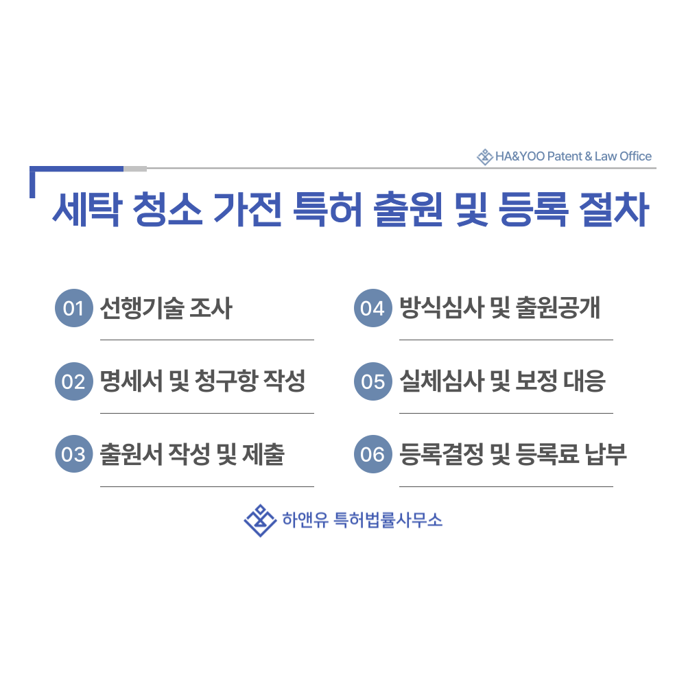 4. 세탁 청소 가전, 세탁기, 로봇 청소기, 건조기, 스팀 청소기 특허 출원 및 등록 절차