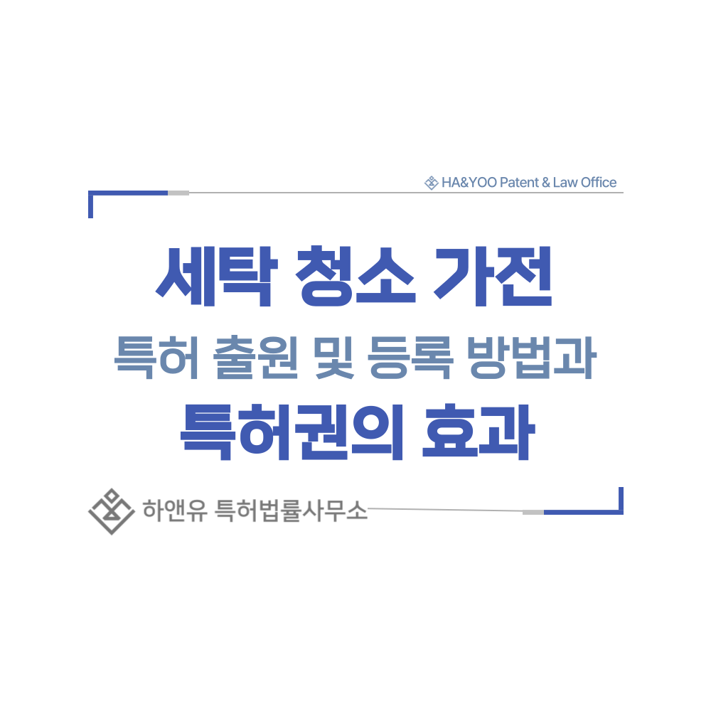 #세탁청소가전 #세탁기 #로봇청소기 #건조기 #스팀청소기 #특허 #특허출원 #특허등록 #특허권 #하앤유 #특허변리사 #PatentRegistration #PatentApplication