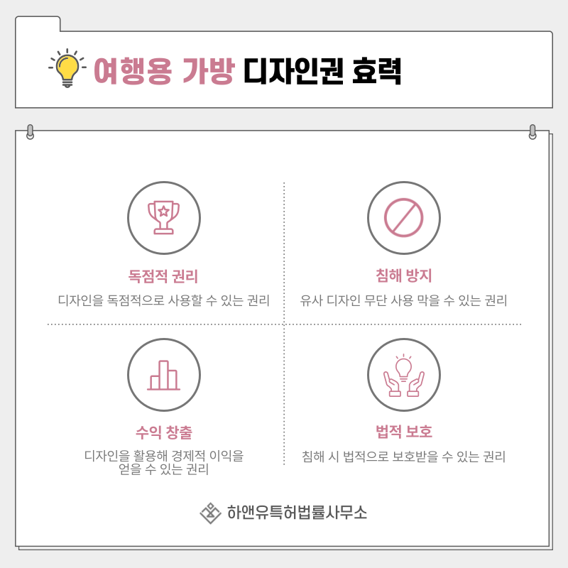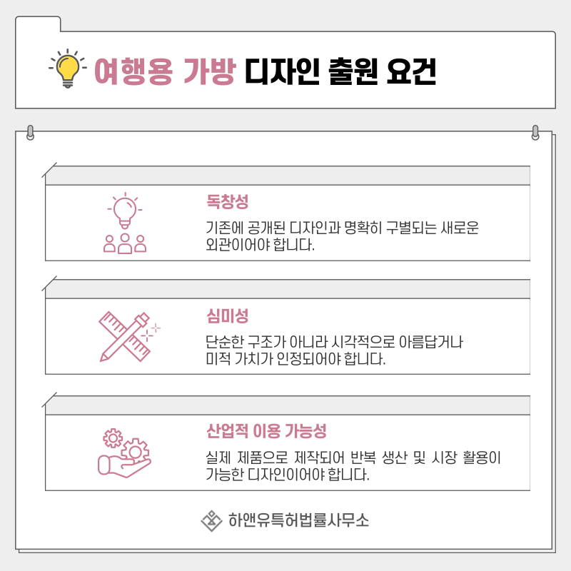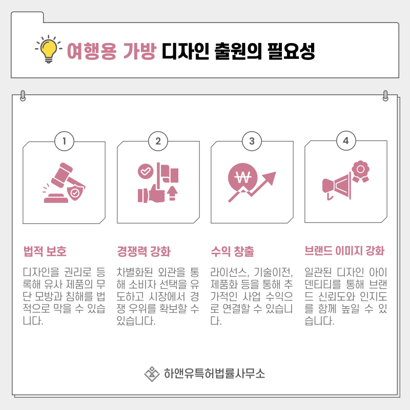 특히 여행용 가방 시장은 디자인 경쟁이 치열하기 때문에 초기 단계에서 디자인을 출원해