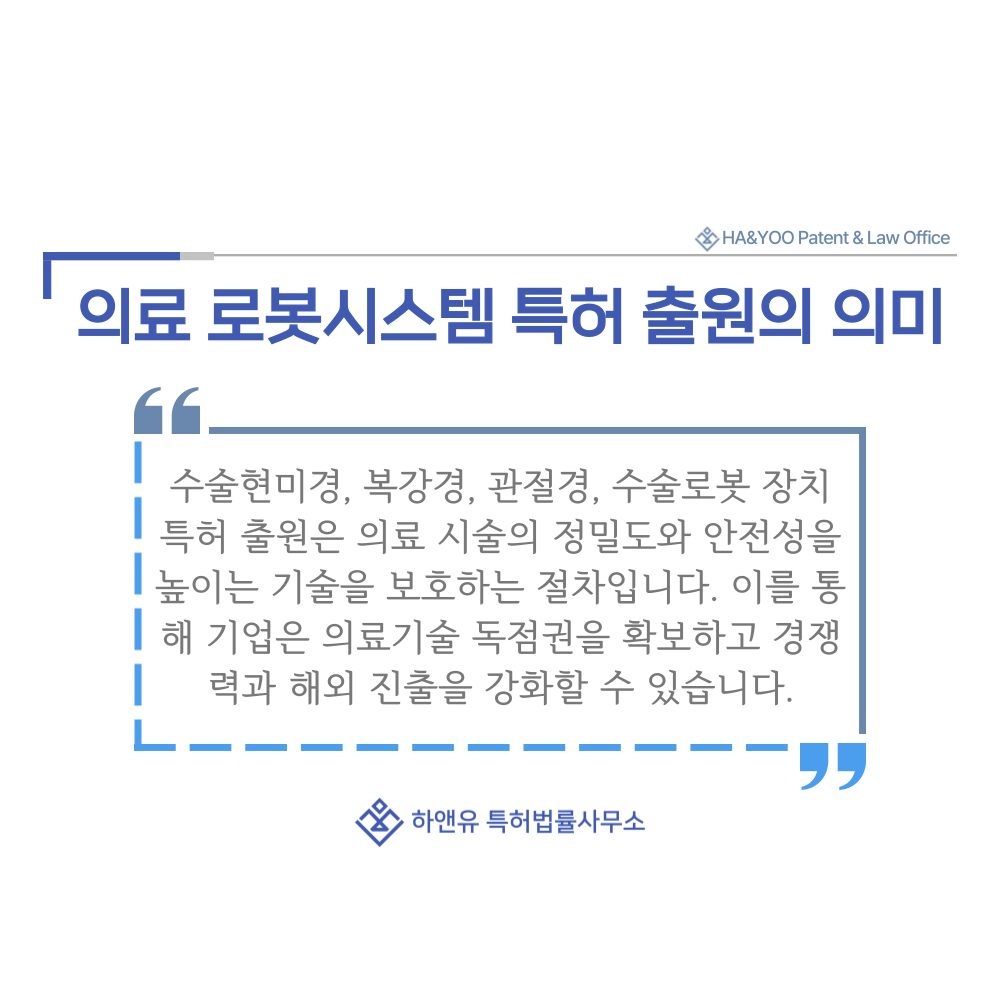 #의료로봇시스템 #수술현미경 #복강경 #관절경 #수술로봇 #장치 #특허 #특허출원 #특허등록 #특허권 #하앤유 #특허변리사 #PatentRegistration #PatentApplication