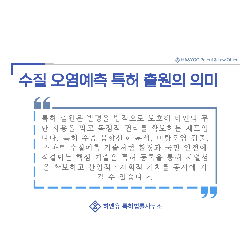 #수질예측기술 #수중음향신호 #미량오염검출 #스마트수질관리 #하앤유특허법률사무소