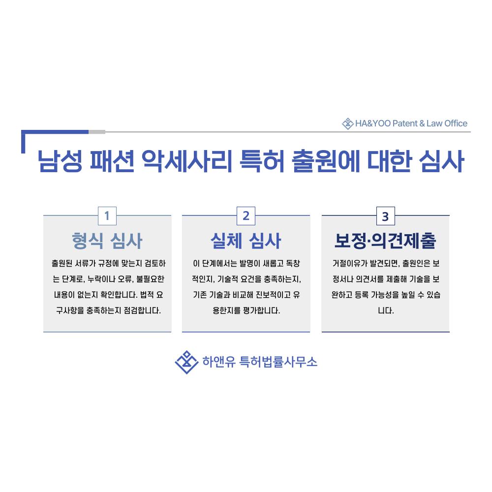 해당 기술이 실제 액세서리·패션·웨어러블 기기 산업에서 반복 생산 및 상업적 활용이 가능하고, 실용성과 제품화 가능성이 충분해야 특허 등록이 가능합니다.