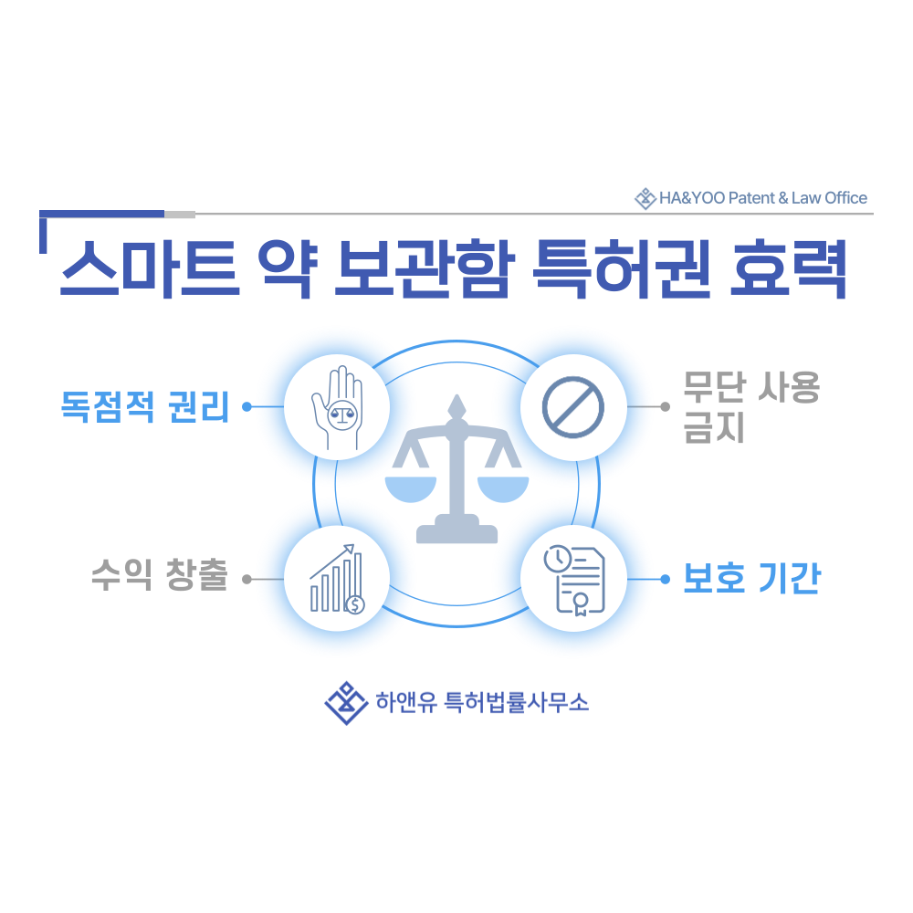 이러한 기술을 특허로 등록하면 동일하거나 유사한 약 보관·관리 방식을 무단으로 사용하는 것을 막을 수 있고, 가정용 의료기기, 병원·약국 관리 시스템, 헬스케어 서비스 등 다양한 시장에서 독점적 경쟁력을 확보할 수 있습니다. 더불어 라이선스 수익과 제품 판매 확대에도 직접적인 도움이 됩니다.