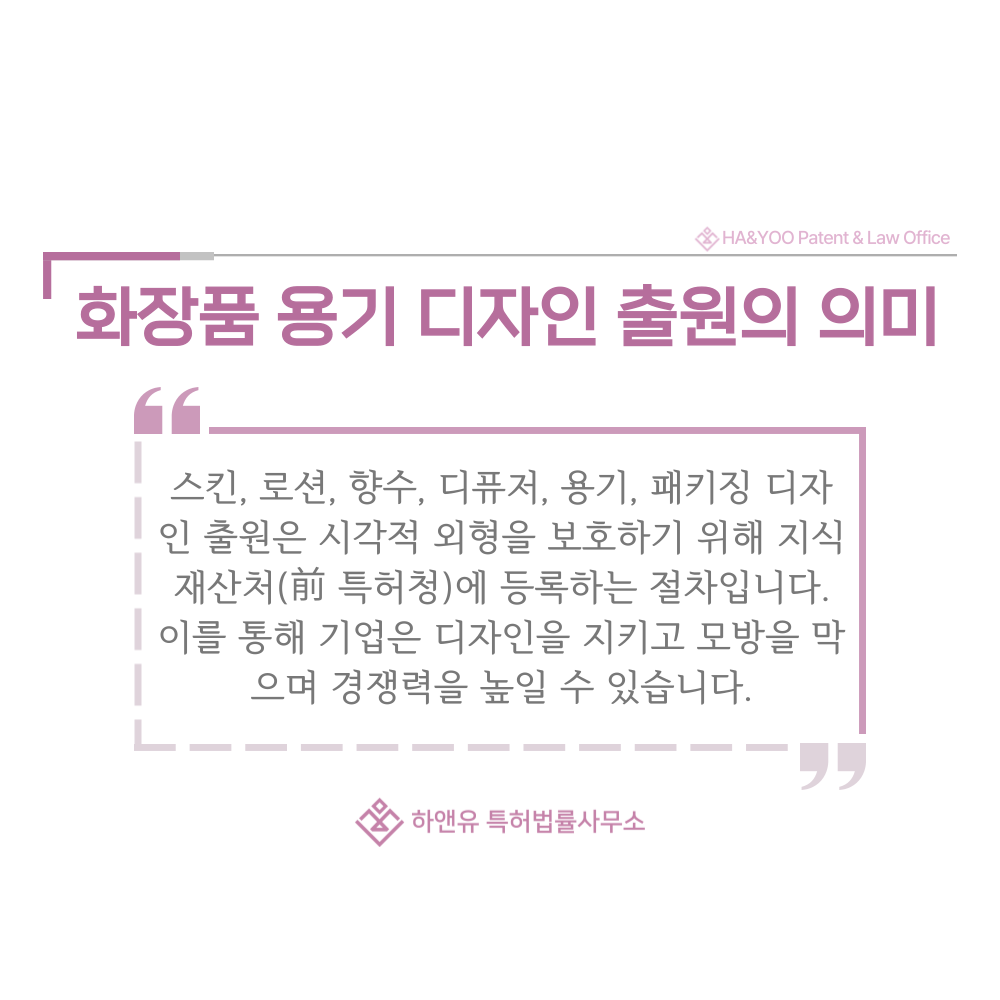 1. 화장품 용기, 스킨, 로션, 향수, 디퓨저, 용기, 패키징 디자인 출원의 의미