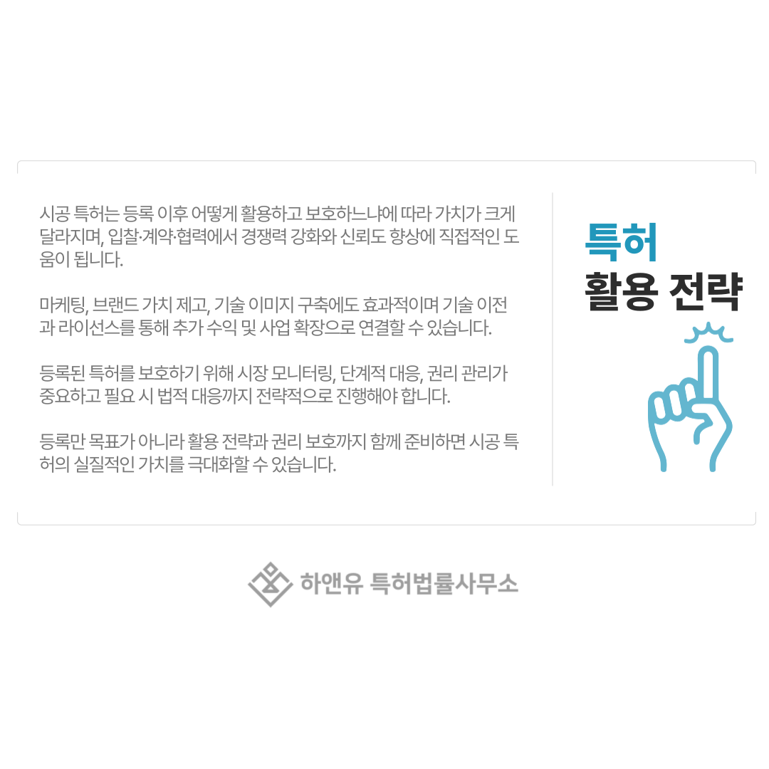 시공 특허는 등록으로 끝나는 권리가 아니라 적극적으로 활용하고 보호해야 가치가 커집니다.