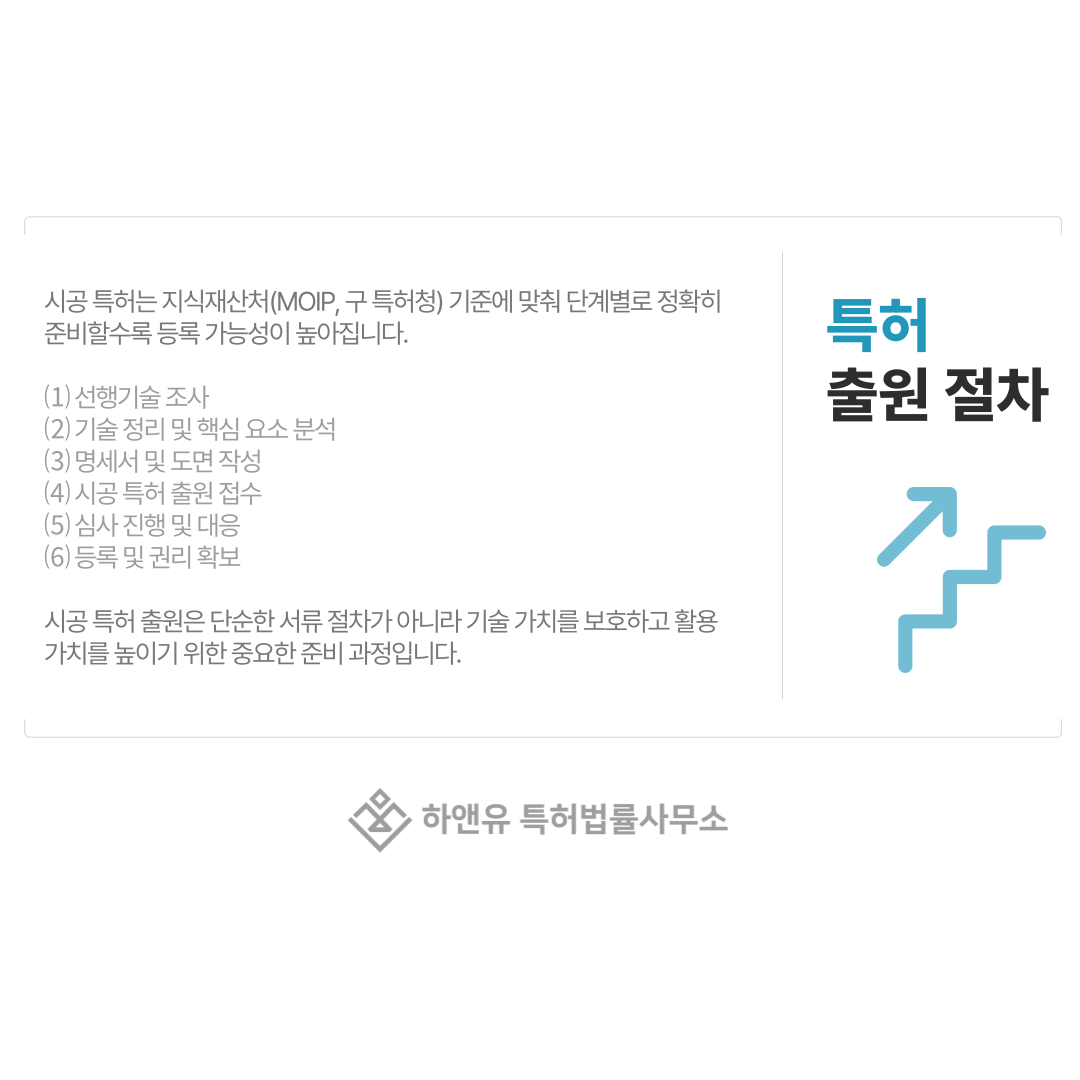 현장 기술을 법적으로 보호받을 수 있는 권리로 만드는 과정이기 때문에 단계별로 정확하게 진행하는 것이 중요합니다.