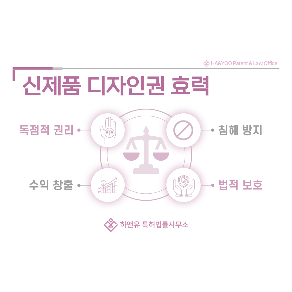 신상품, 신모델, 리뉴얼, 파일럿, 시제품의 디자인이 등록되면 출원인은 해당 외관에 대한 독점적 권리를 가집니다.