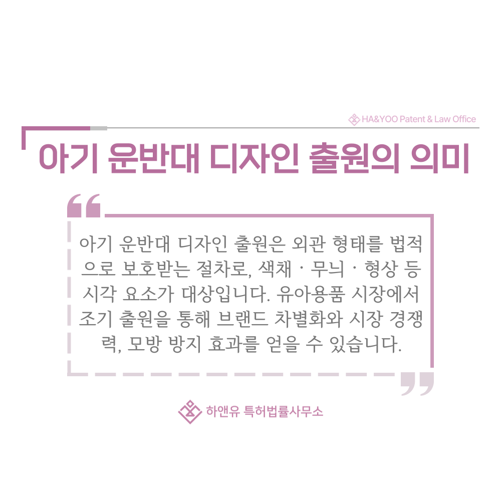 아기 운반대 디자인 출원은 제품의 외관을 법적으로 보호받기 위한 필수 절차입니다.
