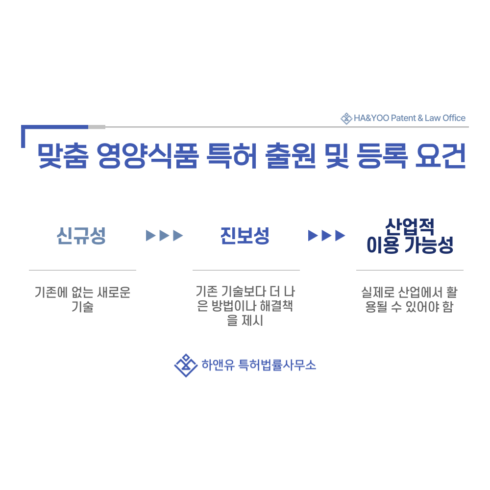 3. 맞춤 영양식품, 영유아식, 이유식, 환자식, 다이어트식 간편 조리 식품 특허 출원 및 등록 요건