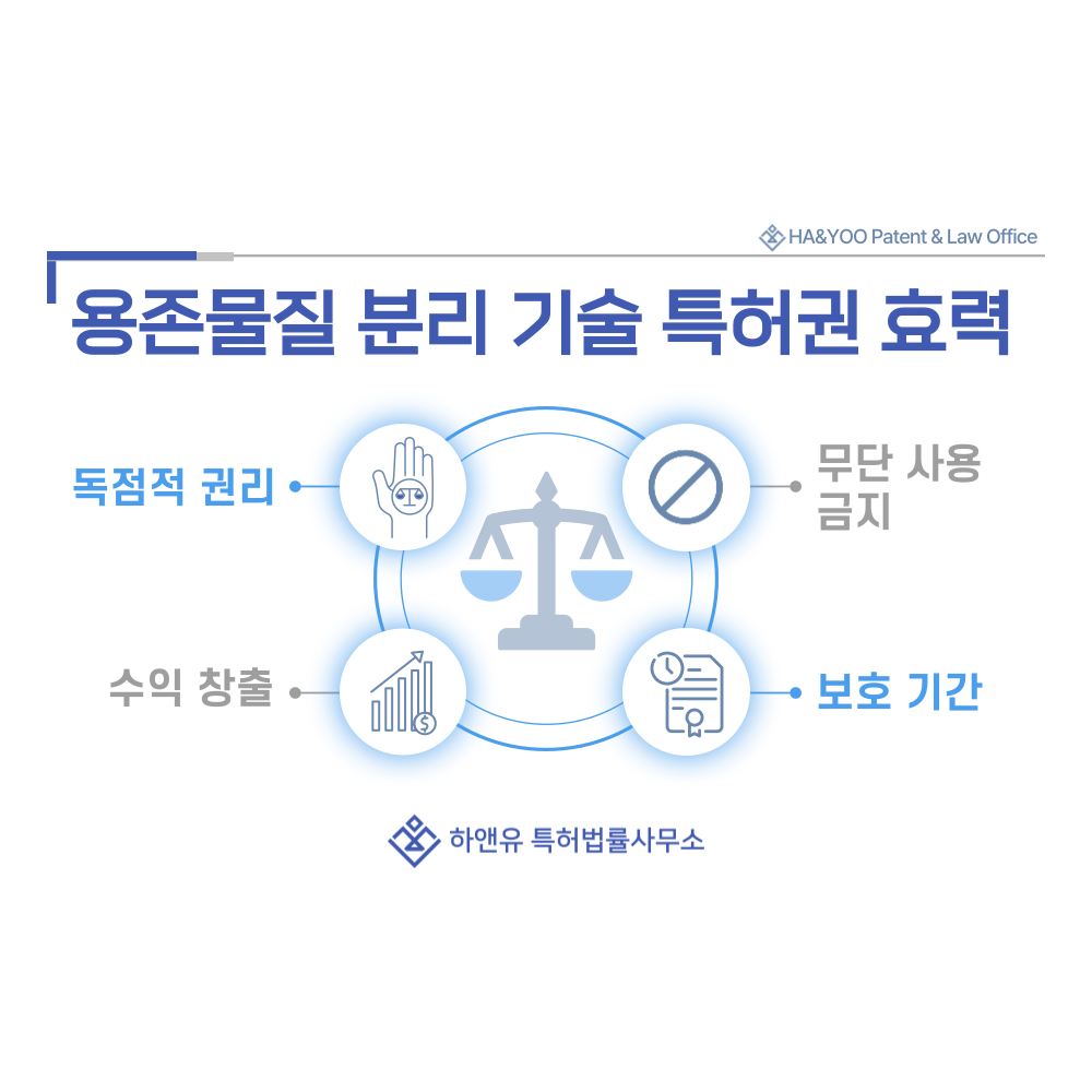 특허권은 단순히 보호 수단에 그치지 않고 경제적 자산으로 활용됩니다. 발명자는 직접 제품을 생산·판매하거나, 다른 기업에 라이선스를 제공해 로열티를 받을 수 있습니다. 특히 용존물질 분리 기술은 환경·에너지·바이오 등 다양한 산업에 적용 가능성이 높아, 특허권을 통해 안정적이고 지속적인 수익 창출이 가능합니다.