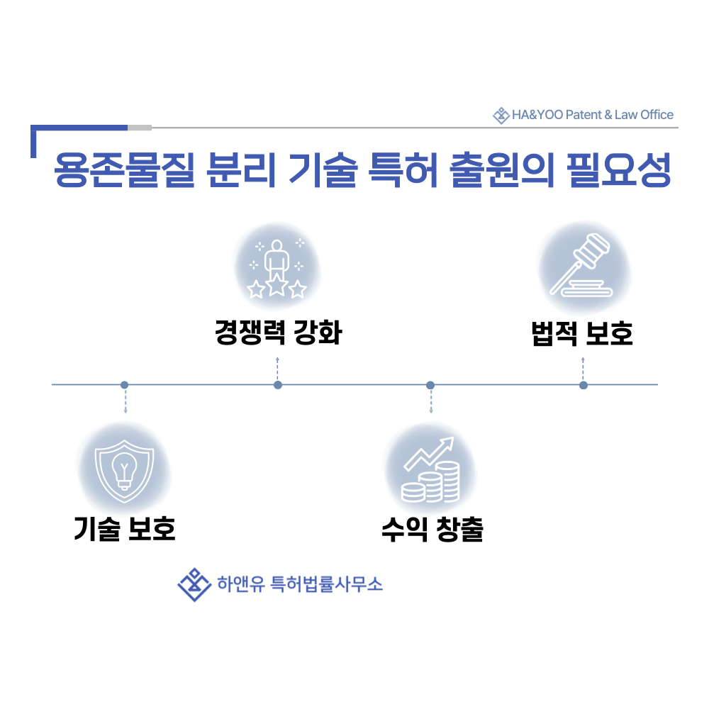 용존물질 분리 기술은 수질 관리, 제약, 바이오, 반도체 세정 등 다양한 산업에서 핵심적으로 활용되는 첨단 기술입니다. 그러나 이러한 기술은 한 번 공개되면 경쟁자가 쉽게 모방할 수 있다는 위험이 있습니다. 특허 출원을 통해 발명 내용을 법적으로 등록해 두면, 개발자의 노하우와 차별화된 기술적 성과가 안전하게 보호됩니다. 이는 연구개발 투자에 대한 안정성을 높여 지속적인 기술 혁신을 가능하게 합니다.