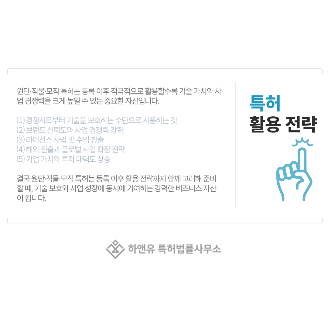 원단·직물·모직 특허는 등록이 끝나면 단순히 보관하는 서류가 아니라 실제로 활용 가능한 중요한 자산이 됩니다.