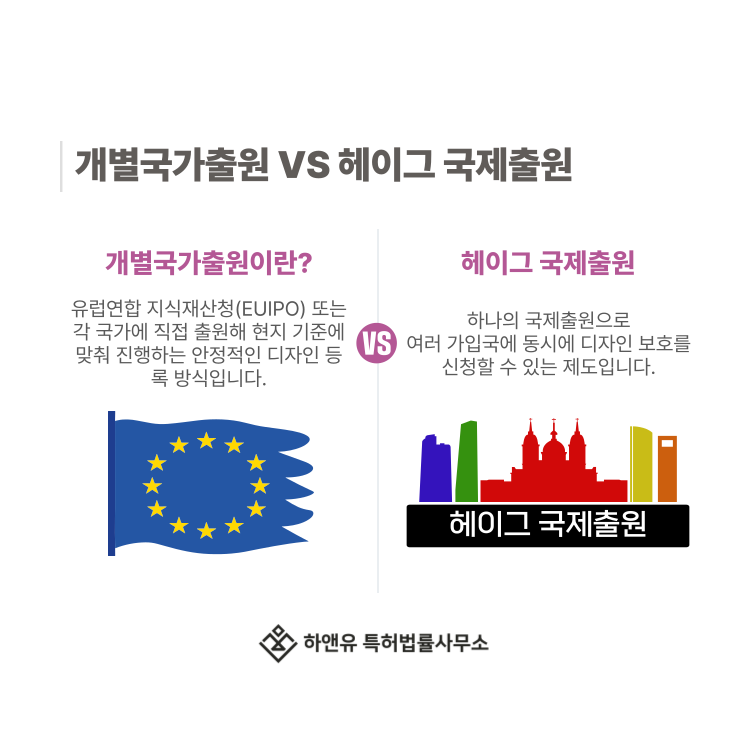 헤이그 국제출원은 하나의 출원으로 여러 국가에 동시에 디자인 보호를 신청할 수 있는 국제 제도입니다.