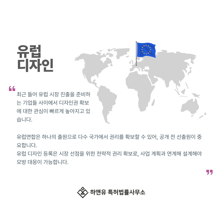 #유럽디자인 #유럽디자인출원 #유럽디자인등록 #유럽디자인특허 #유럽디자인권 #해외출원 #해외상표출원 #헤이그출원 #하앤유특허법률사무소 #DesignPatent #DesignRegistration #DesignApplication