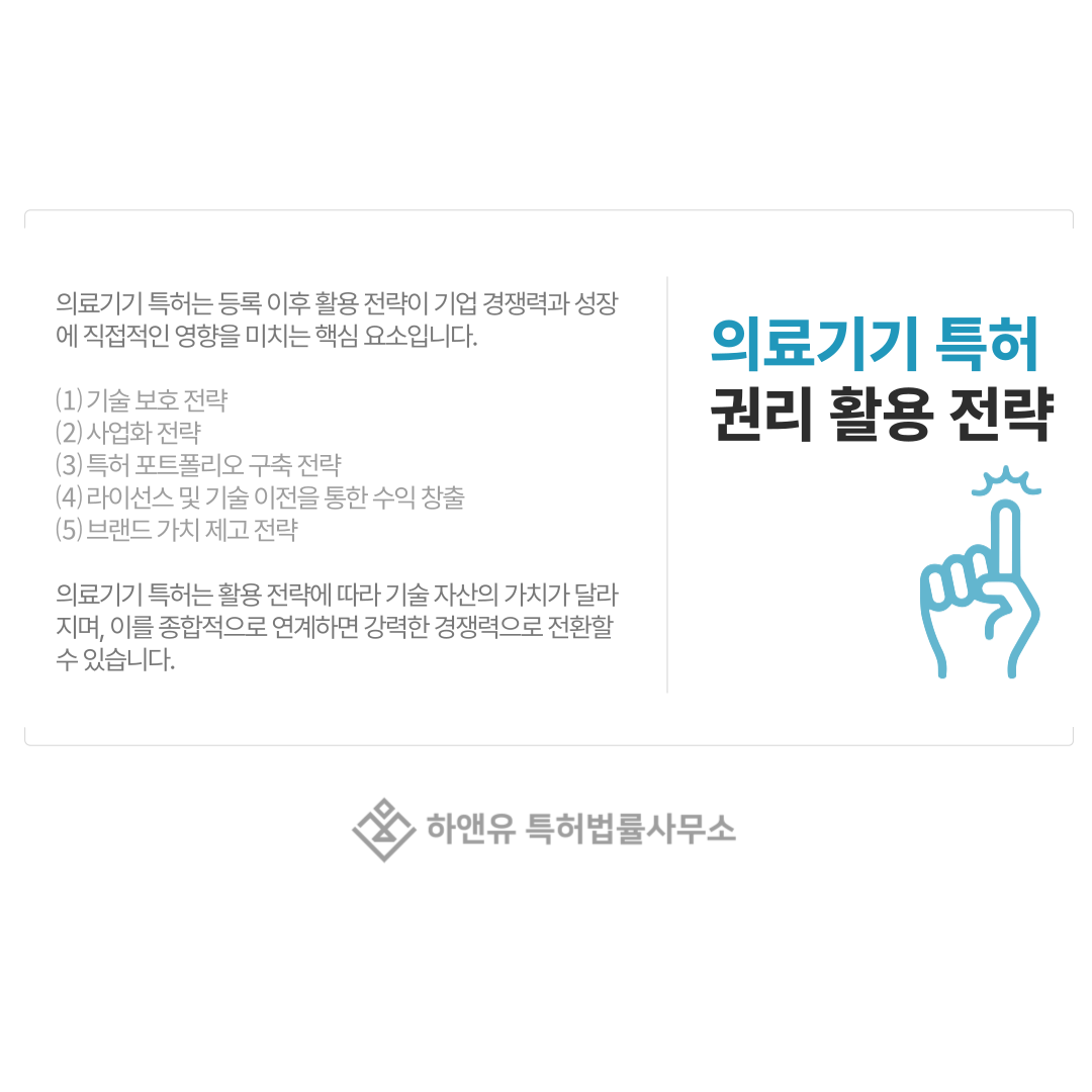의료기기 특허는 등록이 끝이 아니라, 기술을 어떻게 활용해 사업 경쟁력을 높이느냐가 더 중요한 단계로 이어집니다.