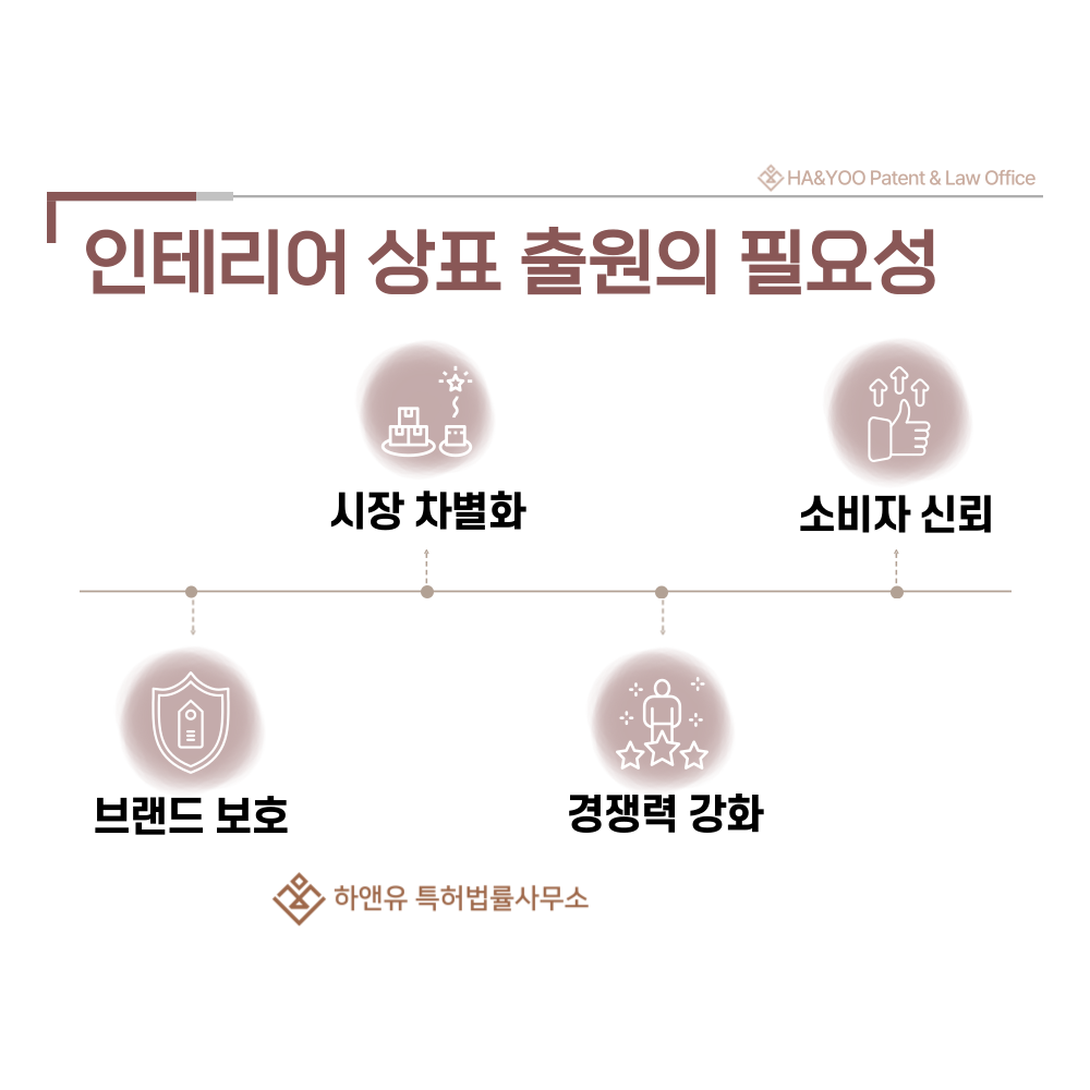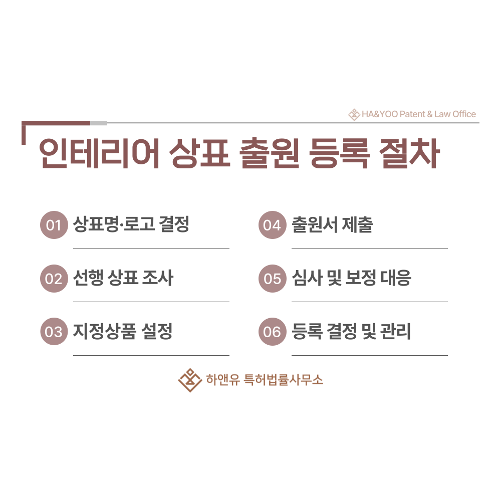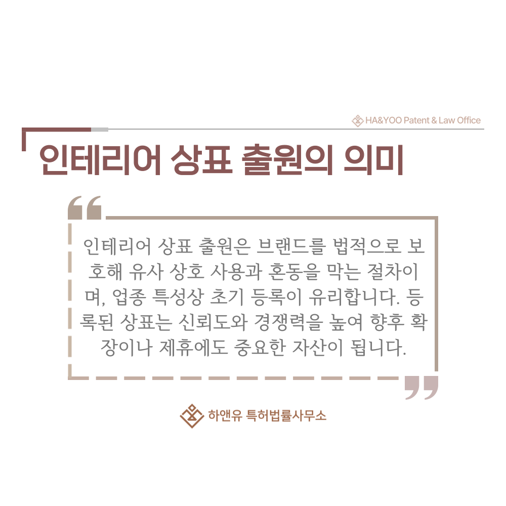 따라서 인테리어 기업은 사업 초기에 상표를 확보해 브랜드 자산을 안정적으로 보호하는 것이 중요합니다.
