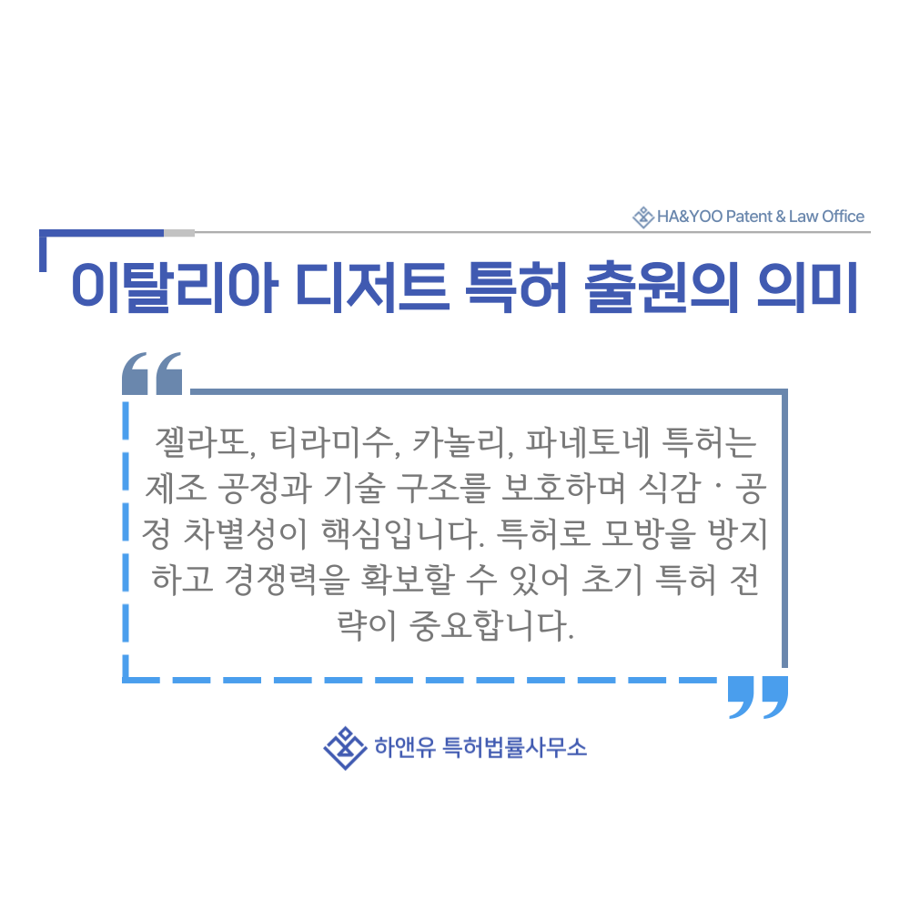 1. 이탈리아 디저트, 젤라또, 티라미수, 카놀리, 파네토네 특허 출원의 의미