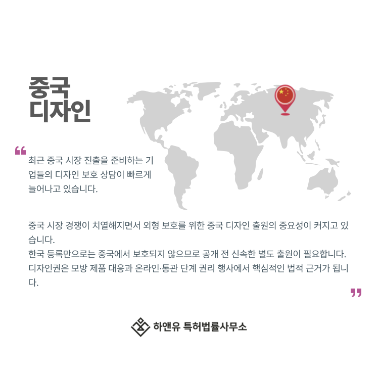 #중국디자인 #중국디자인출원 #중국디자인등록 #중국디자인특허 #중국디자인권 #해외출원 #해외상표출원 #헤이그출원 #하앤유특허법률사무소 #DesignPatent #DesignRegistration #DesignApplication