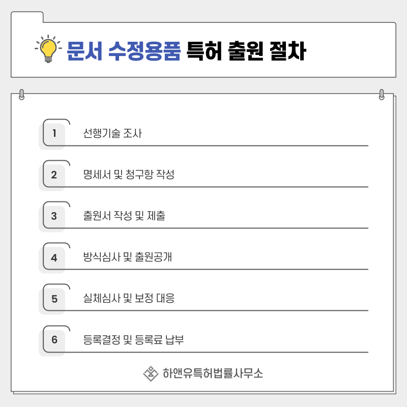4. 문서 수정용품, 지우개, 수정펜, 클리너 펜, 교정액, 수정액, 수정테이프, 화이트 특허 출원 및 등록 절차