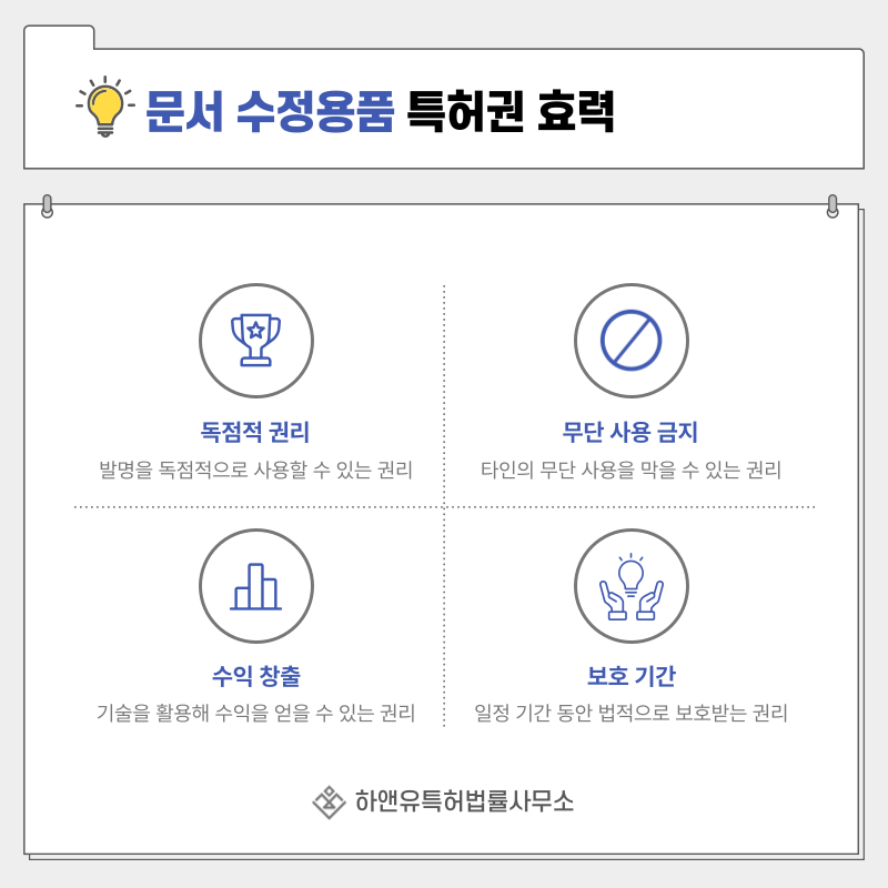 등록 이후에는 해당 기술에 대해 독점적 권리를 행사할 수 있게 됩니다.