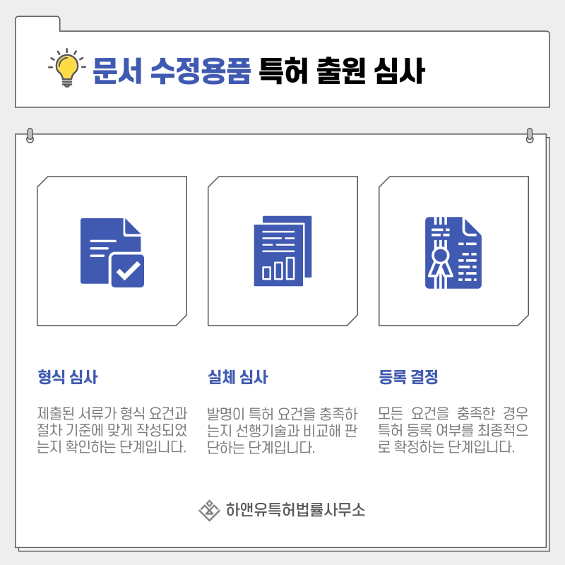 지우개, 수정펜, 교정액, 수정테이프와 같은 문구류 특허 출원 후 가장 먼저 진행되는 단계는 형식심사입니다.