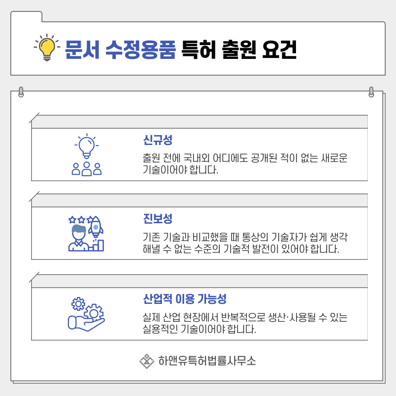 3. 문서 수정용품, 지우개, 수정펜, 클리너 펜, 교정액, 수정액, 수정테이프, 화이트 특허 출원 및 등록 요건