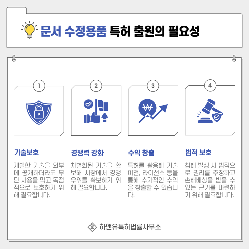 2. 문서 수정용품, 지우개, 수정펜, 클리너 펜, 교정액, 수정액, 수정테이프, 화이트 특허 출원의 필요성