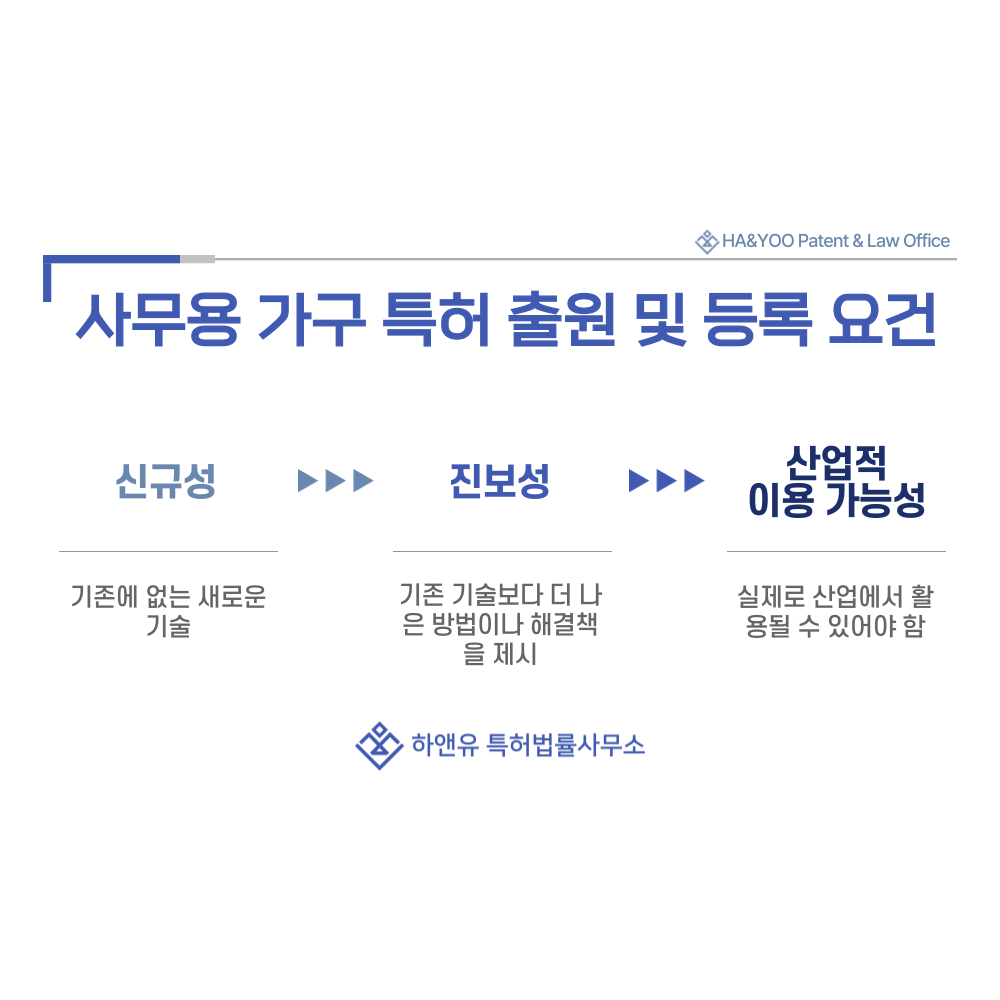 3. 사무용 가구, 책상, 선반, 서재장, 컴퓨터 책상, 모니터 받침대, 태블릿 거치대 특허 출원 및 등록 요건