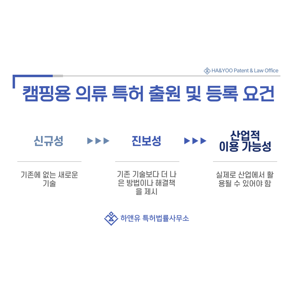 3. 캠핑용 의류, 아우터, 비옷, 보온모, 게이터, 장갑, 양말 특허 출원 및 등록 요건