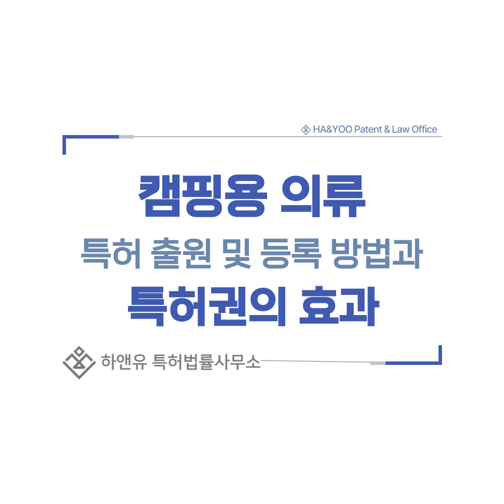 #캠핑용의류 #아우터 #비옷 #보온모 #게이터 #장갑 #양말 #특허 #특허출원 #특허등록 #특허권 #하앤유 #특허변리사 #PatentRegistration #PatentApplication
