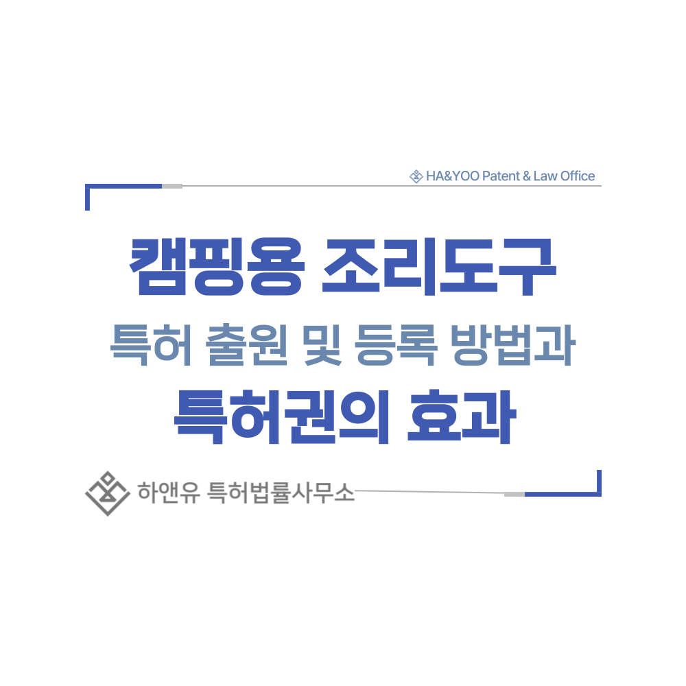 #캠핑용조리도구 #코펠 #쿡셋 #커틀러리 #도마 #칼 #아이스박스 #특허 #특허출원 #특허등록 #특허권 #하앤유 #특허변리사 #PatentRegistration #PatentApplication