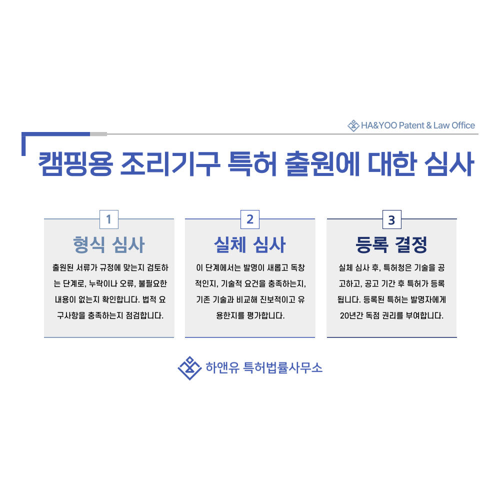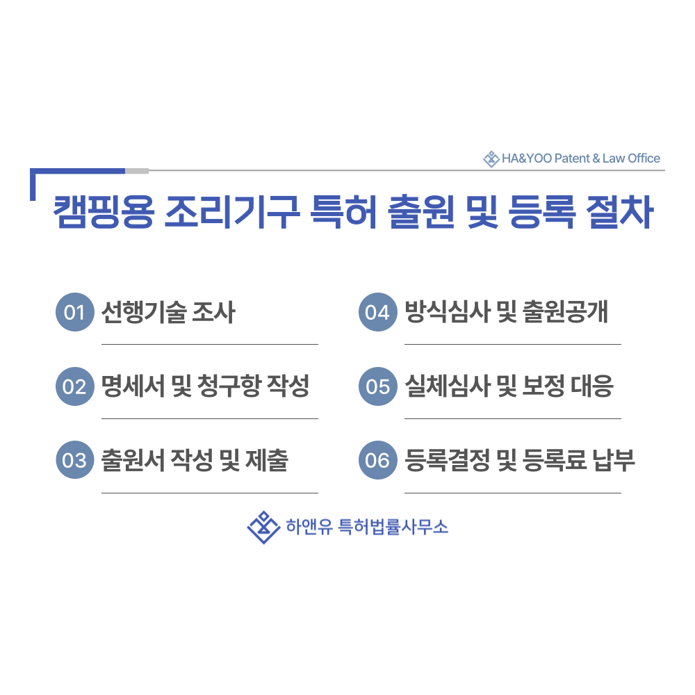 캠핑용 화구, 스토브, 버너, 그릴, 오븐 특허 출원 및 등록 방법, 절차 흐름과 특허권 효과 총정리