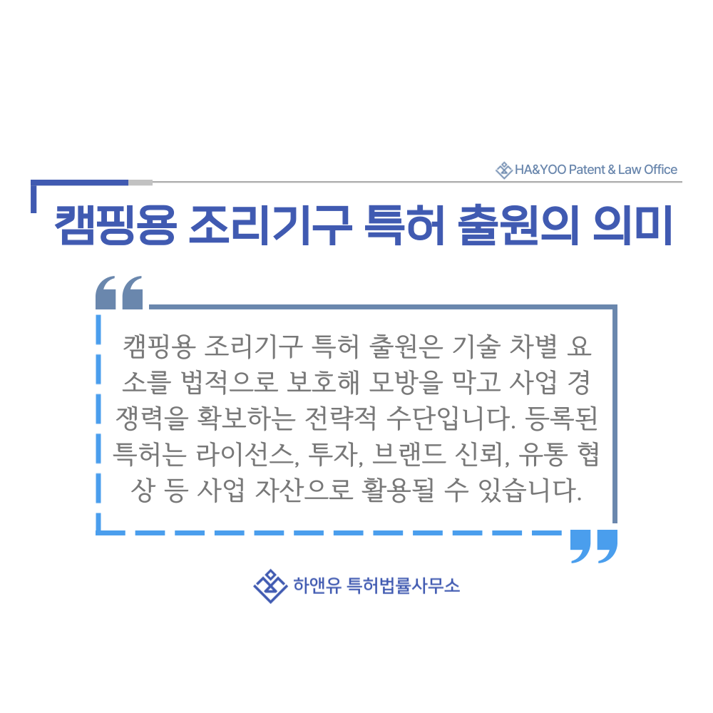 처음부터 전략적으로 설계된 특허는 캠핑 장비를 단순 제품이 아닌 사업 자산으로 만들어 줍니다.