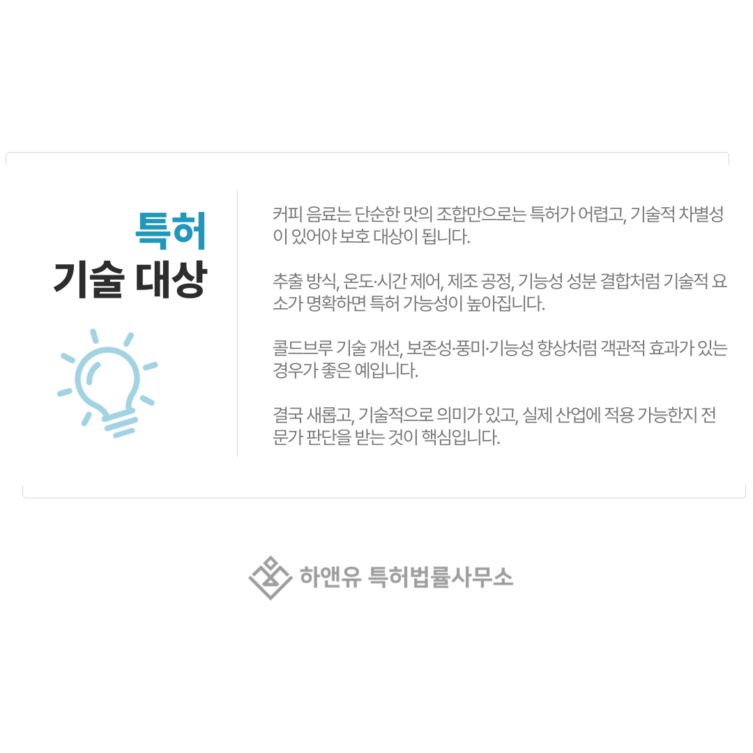 커피 음료 특허는 단순해 보이지만 실제 심사에서는 까다롭게 평가됩니다.